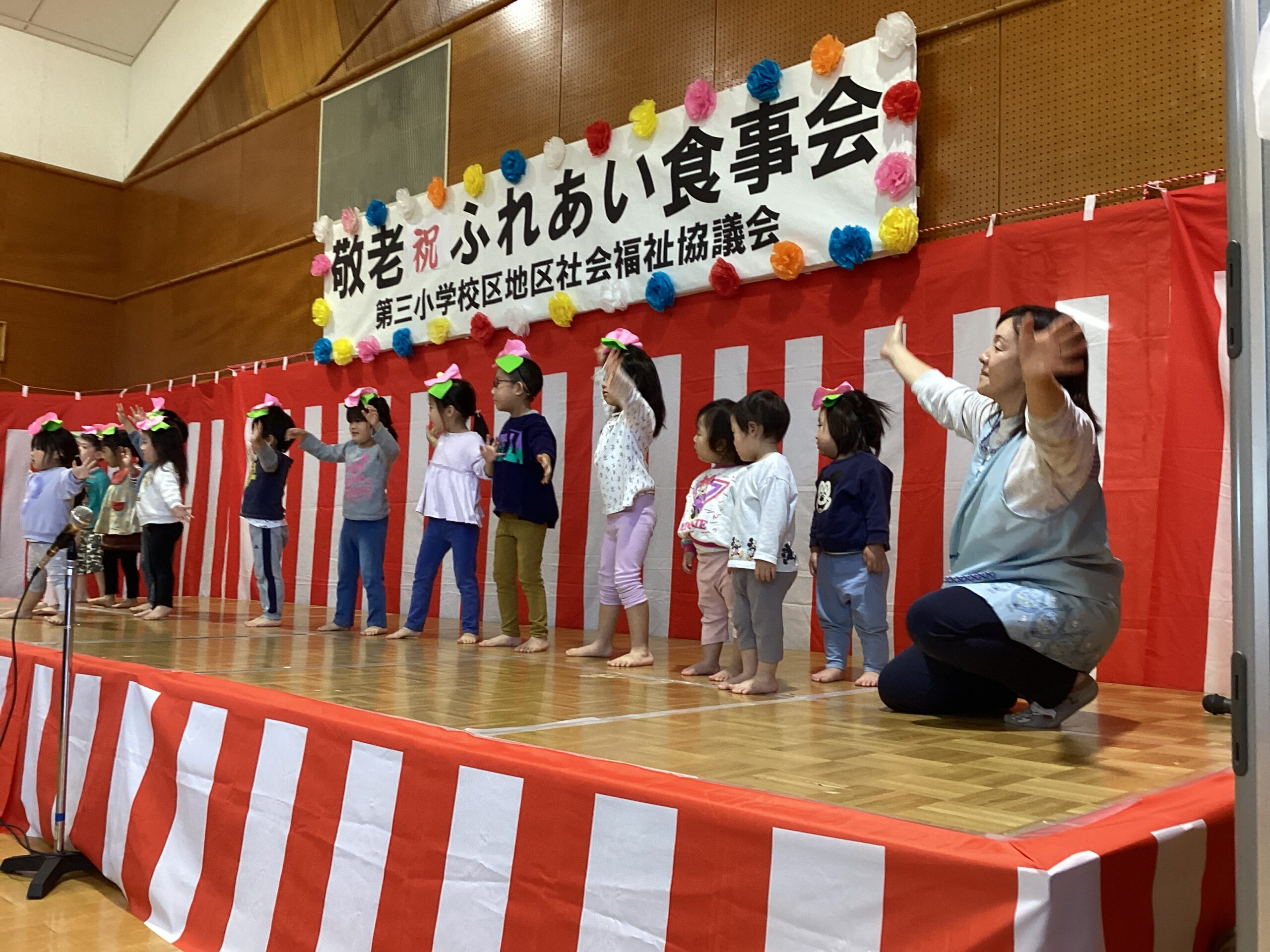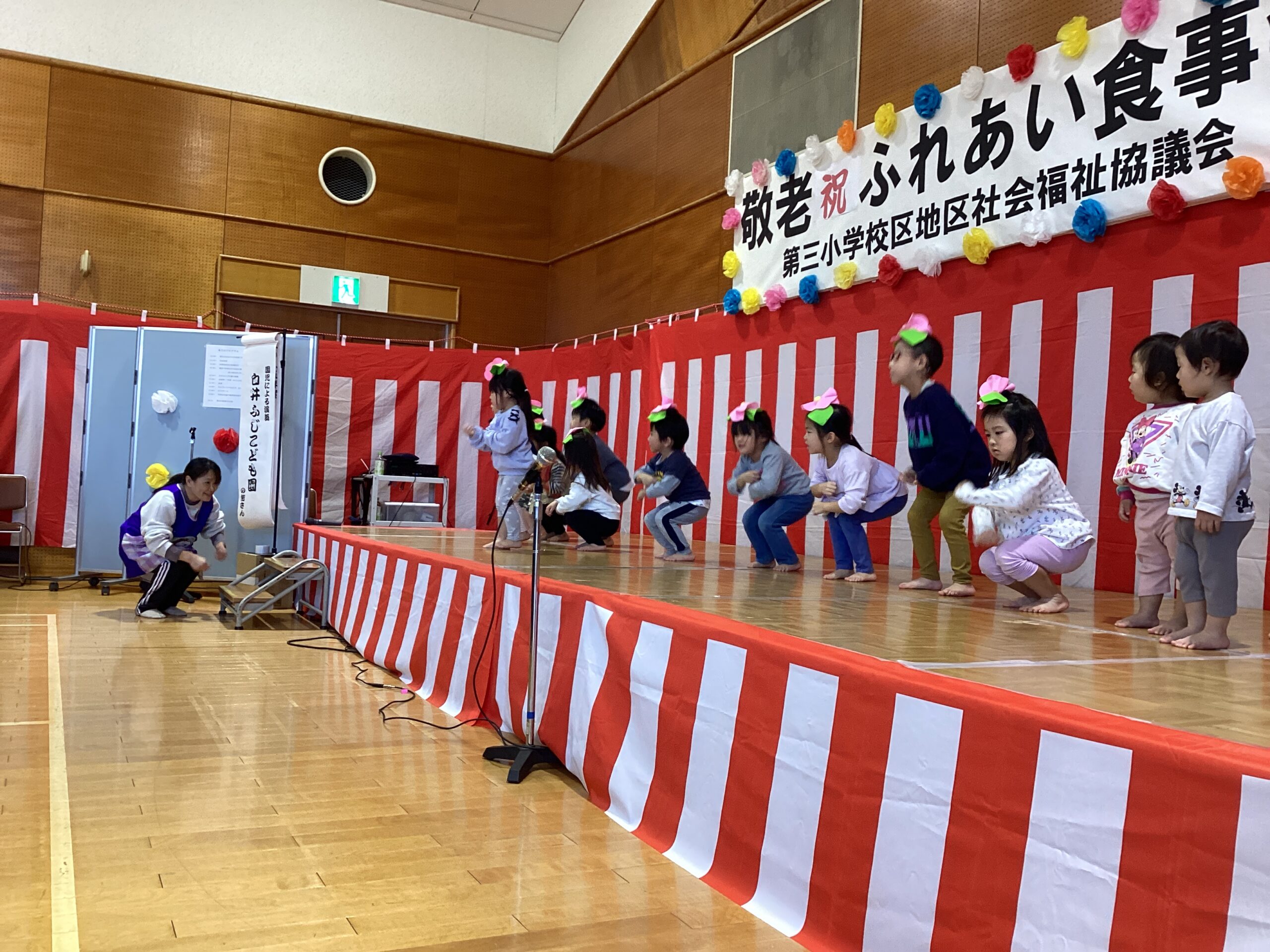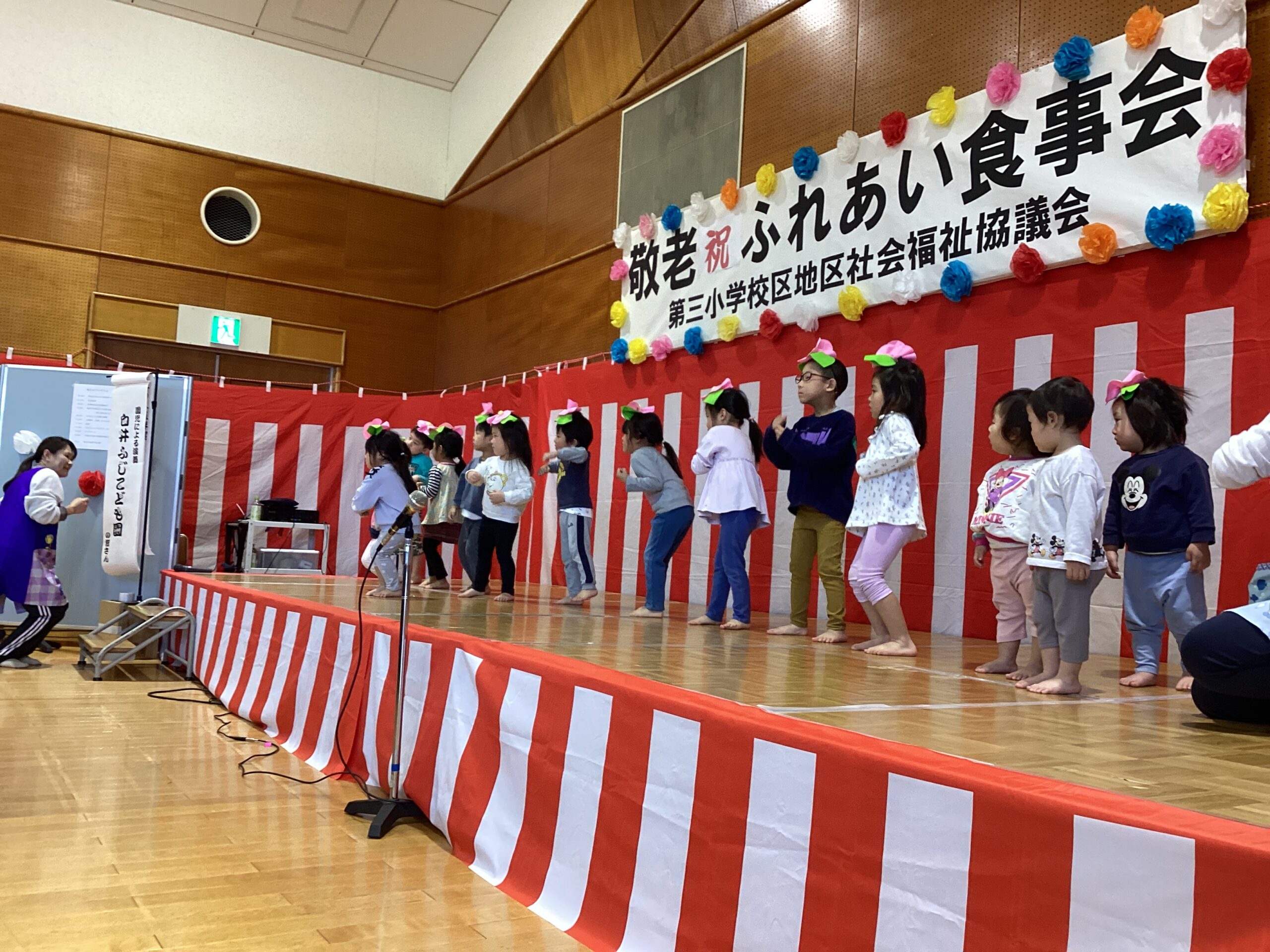 2025/11/23 ㊗敬老会 ふれあい食事会に参加しました✨ 白井ふじこども園の園舎の隣にある冨士センターで『ふれあい食事会』が行われました! 登園していた子どもたちと一緒に、はながっぱのお遊戯を発表しました😊 待機している間、ちょっと緊張気味な子どもたちでした💦 PREV 一覧へ