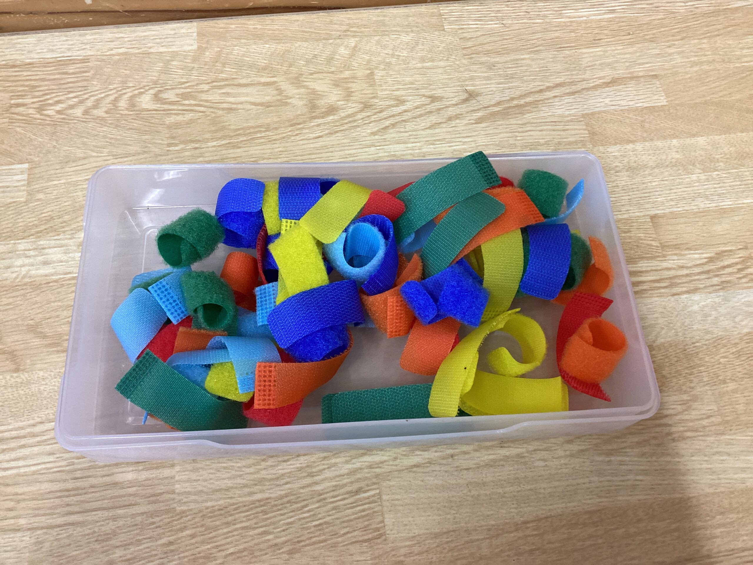 カラフルな日もをお友達と競争しながら、ケースに入れていきます。