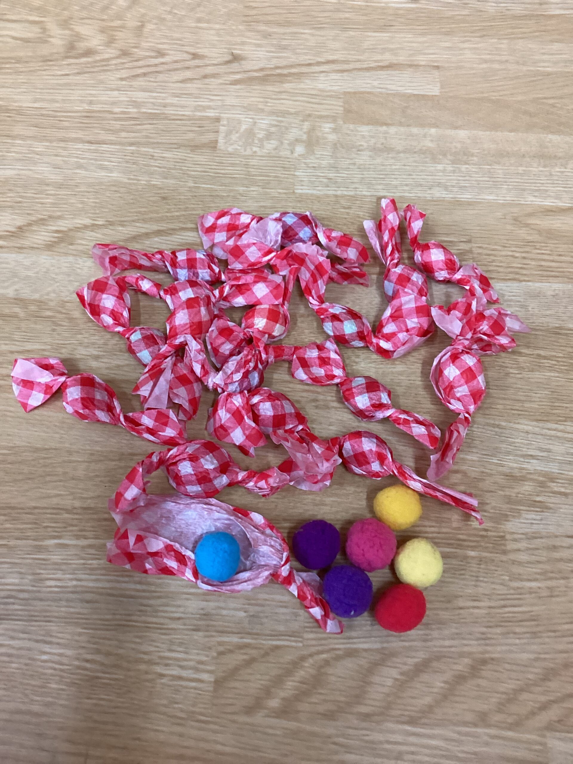 キャンディーの包み紙を取る遊びです!誰が、たくさん包み紙を取ることが出来るかな?