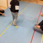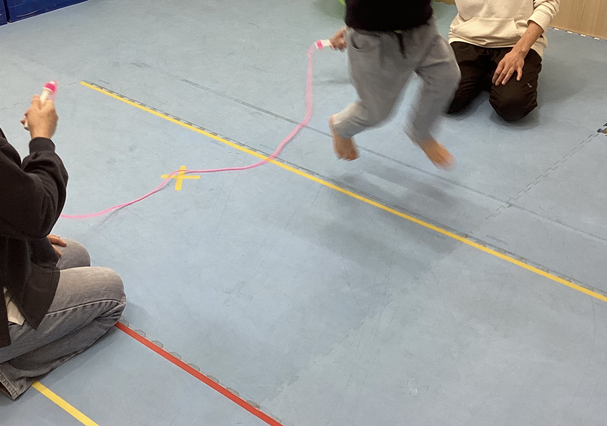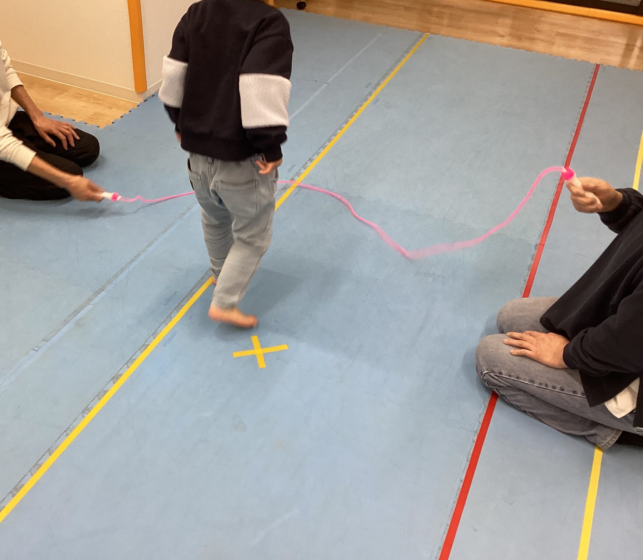 今回の写真は1.サイドステップ 2.縄跳びの活動を行っている所です。